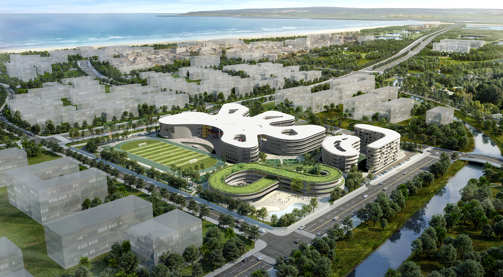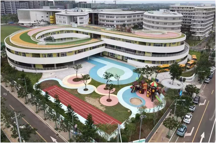 學校秉承國際化設計理念,集智慧化學習空間、舒適性生活空間、多層次活動空間于一體,涵蓋高級中學與幼兒園,配套建設多功能體育設備和開放式場館、“高顏值”教室、圖書館、多功能禮堂等9棟單體建筑,打造出友好的學習氛圍、智能化起居環境、營造了精彩的生活社區。可供1728個高中學位與450名幼兒學童。